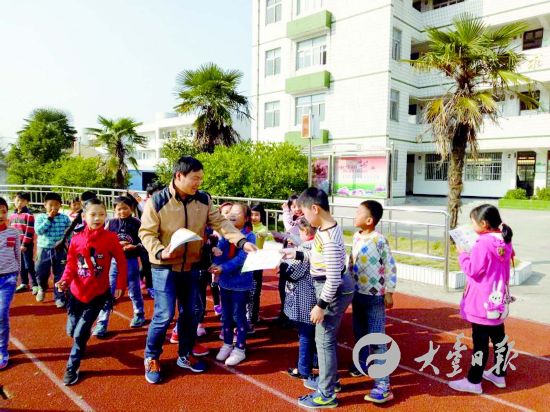 連日來(lái),草廟小學(xué)利用校紅領(lǐng)巾廣播站、板報(bào)、畫廊、宣傳單等載體,宣傳創(chuàng)建全國(guó)文明城市的意義、要求及相關(guān)應(yīng)知應(yīng)會(huì)知識(shí),營(yíng)造濃烈的創(chuàng)建氛圍。圖為該校少先隊(duì)輔導(dǎo)員向少先隊(duì)員發(fā)放創(chuàng)建宣傳單。單雪峰 陳國(guó)軍 攝