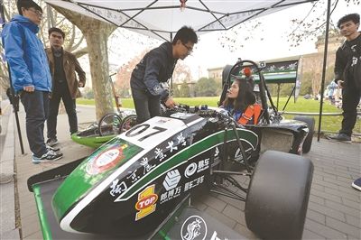 7日,“知我南農(nóng),愛我南農(nóng)”校園博覽會在南京農(nóng)業(yè)大學(xué)舉行。學(xué)校引導(dǎo)大學(xué)生把不同的專業(yè)知識融入展臺,增強學(xué)生校園歸屬感和專業(yè)認同感。圖為學(xué)生體驗方程式賽車。