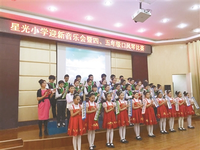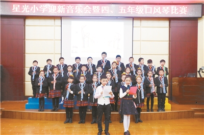 12月21日下午,星光小學報告廳里琴聲悠揚,歡樂不斷,星光小學迎新年音樂會暨四、五年級口風琴比賽在這里舉辦。在成功和收獲的喜悅中2016年漸漸遠去,新的一年正邁著有力的步伐向我們走來;為了點亮一個五彩斑斕的夢,撥亮新年的燭光,全體四、五年級的師生們歡聚一起,用美好的琴聲迎接新的一年。