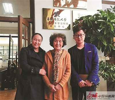 業(yè)務(wù)校長江曉靜、大隊輔導(dǎo)員金胤君和情境教育專家李吉林老師合影。
