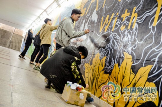常州大學(xué)白云校區(qū)有一條貼滿了小廣告和海報(bào)的地下通道,從去年年底開始,近百名藝術(shù)學(xué)院的大一新生利用課余時(shí)間在這里構(gòu)思創(chuàng)作,完成了24幅大型墻畫作品,既有校園景觀寫實(shí)畫,又有迪斯尼動(dòng)漫畫,還有抽象創(chuàng)意畫,如今這里成了一條“創(chuàng)意隧道”,也變?yōu)樾@內(nèi)的一道靚麗風(fēng)景,今后還將定期更新墻畫內(nèi)容。