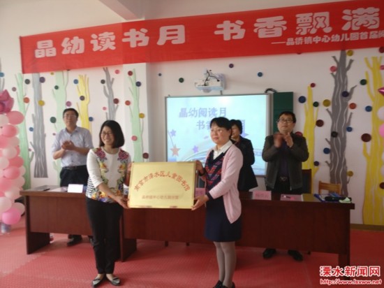4月21日,全區(qū)首個(gè)“留守兒童閱讀基地”授牌儀式在晶橋中心幼兒園舉行。當(dāng)天,區(qū)教育局、區(qū)文廣局、晶橋鎮(zhèn)、區(qū)兒童圖書(shū)館的相關(guān)負(fù)責(zé)人參加了“晶幼讀書(shū)月書(shū)香飄滿園”閱讀月活動(dòng)。