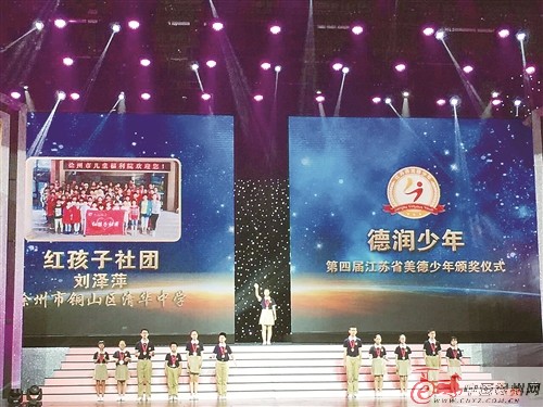 “六一”前夕,第四屆江蘇省“百名美德少年”“十大美德少年標(biāo)兵”評(píng)選結(jié)果揭曉。銅山實(shí)驗(yàn)小學(xué)“紅孩子社團(tuán)”榮獲第四屆江蘇省“百名美德少年”稱號(hào)。5月27日,省文明辦、省教育廳、團(tuán)省委、省婦聯(lián)、省關(guān)工委、新華報(bào)業(yè)傳媒集團(tuán)、省廣電總臺(tái)在江蘇大劇院聯(lián)合舉行頒獎(jiǎng)儀式。紅孩子社團(tuán)團(tuán)長(zhǎng)劉澤萍、劉澤政代表社團(tuán)登臺(tái)領(lǐng)獎(jiǎng)。這枚獎(jiǎng)?wù)率菍?duì)他們的肯定,更是對(duì)他們的鼓勵(lì)與期望,希望他們能夠帶領(lǐng)和影響更多的人參與到社團(tuán)中來(lái),讓善良、誠(chéng)實(shí)、愛(ài)心和夢(mèng)想深植內(nèi)心,成為時(shí)代最美的風(fēng)景。