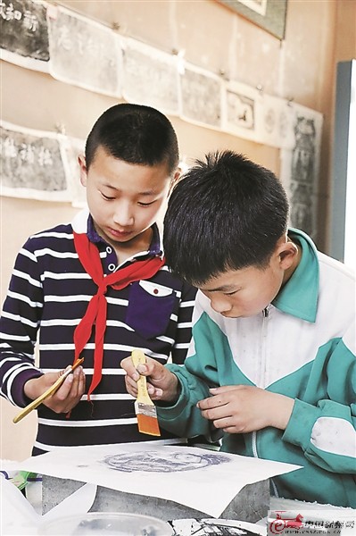 九里山實驗學(xué)校學(xué)生制作拓片。