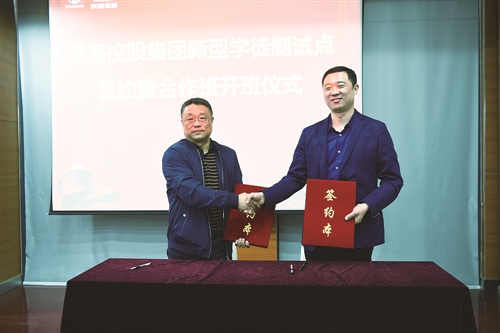 徐州技師學(xué)院與淮?毓杉瘓F(tuán)新型學(xué)徒制試點(diǎn)簽約。