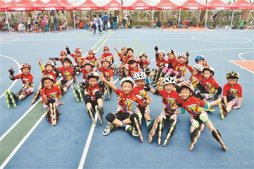 課程是一段美好的人生經(jīng)歷,履歷課程充分利用地方和社會(huì)值得開發(fā)的課程資源,帶動(dòng)校本課程的特色化建設(shè),引導(dǎo)學(xué)生學(xué)會(huì)做人、學(xué)會(huì)學(xué)習(xí)、學(xué)會(huì)生活。作為“中國(guó)輪滑運(yùn)動(dòng)示范學(xué)校”,校園輪滑“云興模式”享譽(yù)全國(guó)。自2006年開始發(fā)展輪滑特色課程,云興小學(xué)的輪滑運(yùn)動(dòng)得到了突飛猛進(jìn)的發(fā)展,輪滑選手多次在全國(guó)、全省的輪滑比賽中斬金奪銀、屢創(chuàng)佳績(jī),F(xiàn)在,已形成“休閑輪滑+速滑+輪滑球”的模式,擁有五支不同級(jí)別的速滑隊(duì)、一支輪滑球隊(duì)、一支輪滑表演隊(duì),班級(jí)每個(gè)班都有輪滑球隊(duì),學(xué)校輪滑運(yùn)動(dòng)普及率與掌握輪滑技能的人數(shù)達(dá)到90%以上。同時(shí)學(xué)校參與指導(dǎo)全市2所中學(xué)、7所小學(xué)、32所幼兒園學(xué)生常年參與輪滑運(yùn)動(dòng),帶動(dòng)每年7000余名青少年參與到輪滑運(yùn)動(dòng)中來(lái),使得徐州市輪滑運(yùn)動(dòng)良性、協(xié)調(diào)發(fā)展,成為我市發(fā)展全面體育運(yùn)動(dòng)的一支重要力量。