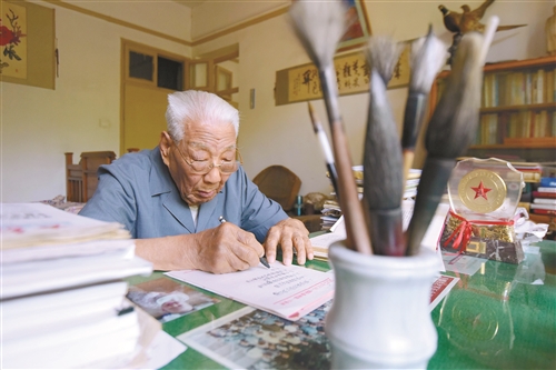 許克杰:我是一個孤兒,12歲那年,我參加了八路軍。今天無論做多少事,我都是為了報黨恩,是黨把我從一個苦孩子培養(yǎng)成人。離休后,我致力于記錄戰(zhàn)斗經(jīng)歷、總結(jié)戰(zhàn)斗經(jīng)驗,希望能為軍隊留下一筆財富。1988年到1991年,我參與編纂《一代戰(zhàn)將——回憶王近山》一書,鄧小平同志親自題寫書名。2007年,我又主持籌備了集團軍軍史陳列館。離休后,閑不住的我還受聘擔任駐地機關(guān)、學校和部隊的編外輔導員。作為中宣部、原總政治部組織的紀念抗戰(zhàn)勝利70周年宣講團成員,先后到北京、沈陽、南京等地進行宣講。今年是淮海戰(zhàn)役勝利70周年,只要組織需要,只要身體允許,我將繼續(xù)戰(zhàn)斗下去。
