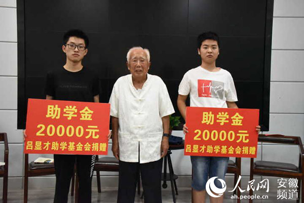 人民網(wǎng)合肥8月16日電(記者李闊 實習(xí)生葉傳增)在安徽省界首市,有這樣一位老師。他不但66年來長期奮斗在教育一線,為無數(shù)學(xué)生傳道授業(yè)。如今耄耋之年,他又毅然捐資300萬元成立助學(xué)基金會資助優(yōu)秀學(xué)子,可謂師者之典范。他就是86歲的退休老教師呂顯才。8月12日,呂顯才助學(xué)基金會啟動儀式在界首一中舉行,現(xiàn)場為兩名考入北大的學(xué)生發(fā)放了4萬元助學(xué)金。年屆86歲的呂顯才,用自己的實際行動詮釋了教書育人的情懷。