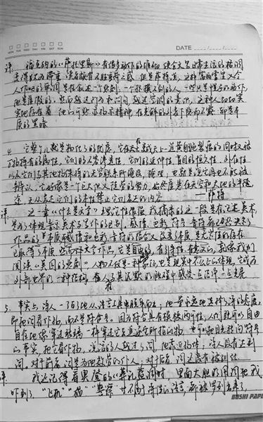 在積累寫作素材方面,顏逸群有個好習(xí)慣,她堅(jiān)持每周梳理一個專題,對摘抄本進(jìn)行二次加工,記錄下思維的火花,提煉自己的觀點(diǎn)和看法。而專題的靈感來源主要有兩個渠道,首先課本是專題梳理的抓手。比如語文課本中有“向青春舉杯”的專題,她就聯(lián)想到有一年的高考作文題“青春不朽”,圍繞青春這個專題做些閱讀和寫作方面的積累。