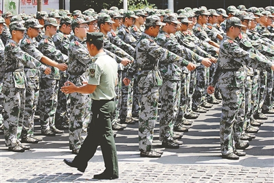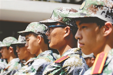 29日,南京最高溫度達(dá)34℃,南京高校的“00后”大一新生開始軍訓(xùn),雖然汗流浹背,但他們稚嫩的臉上透著幾分堅定和堅持。 (宋 寧)