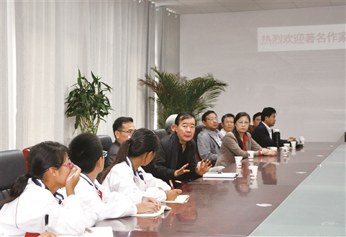 著名作家、編劇周梅森先生在給楓楊文學(xué)社成員講課