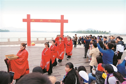 10月14日上午,美麗的云龍湖畔,來自徐州高級中學(xué)的百余名即將步入18歲的青年學(xué)子,迎來了一次特殊的漢式成人禮,在邁向人生的重要階段,體驗(yàn)了一把傳統(tǒng)文化的魅力。