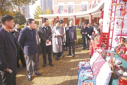 當(dāng)日,開(kāi)發(fā)區(qū)實(shí)驗(yàn)學(xué)校廣場(chǎng)上,徐州經(jīng)開(kāi)區(qū)教育系統(tǒng)39個(gè)黨支部分別以展板的形式展示了黨建工作的亮點(diǎn)特色,并以學(xué)生現(xiàn)場(chǎng)手工制作的形式集中展示了“紅色文化”與“書(shū)香校園”建設(shè)結(jié)合的藝術(shù)形態(tài)。開(kāi)發(fā)區(qū)實(shí)驗(yàn)學(xué)校的紅色香包、西朱小學(xué)的紅色剪紙、新興小學(xué)的紅色麥秸畫(huà)、侯集實(shí)驗(yàn)小學(xué)的紅色篆刻,都令觀者感受到了濃郁的家國(guó)情懷。繡著“不忘初心跟黨走”的精致香包,“喜迎十九大 永遠(yuǎn)跟黨走”的精美剪紙、雄偉天安門(mén)的特色麥秸畫(huà)、濃縮著國(guó)學(xué)經(jīng)典的精湛篆刻……這些凝結(jié)著愛(ài)國(guó)主義文化內(nèi)涵的藝術(shù)品均出自學(xué)生之手。