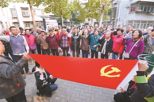 社區(qū)黨員重溫入黨宣誓。 本報(bào)全媒體記者 孫井賢 攝