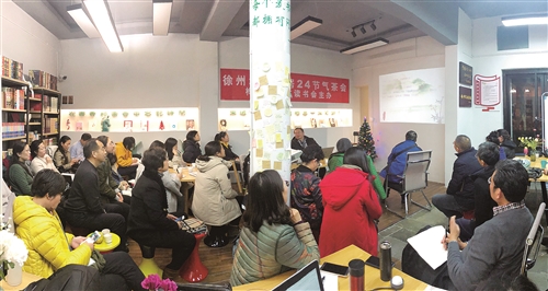 沒有宣傳造勢,沒有啟動儀式,試開放不足一月的和平路24小時城市書房在朋友圈不脛而走。這家由徐州圖書館和徐州詩歌圖書館聯(lián)合開設(shè)的24小時開放的共享閱讀空間,已先后舉辦了“玫瑰之約讀書會”“國家公祭日運(yùn)河支隊(duì)專題讀書朗誦會”“24節(jié)氣之冬至茶會”等活動,文人雅士以書會友,其樂融融。