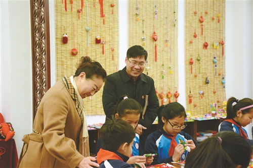 衡水市代表團(tuán)參觀(guān)學(xué)生制作香包。