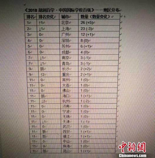 《2018胡潤百學·中國國際學校百強》——地區(qū)分布圖。 供圖 攝