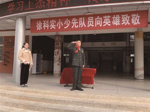 3月18日上午9點,一次特別的升旗儀式在科技實小舉行。孩子們身著統(tǒng)一校服排列整齊,靜靜地注目著前方。一位衣著“綠色軍裝”的中年男子筆直站立,微笑著抬起右手,向孩子們敬了一個標(biāo)準(zhǔn)的軍禮,然后講起了他保家衛(wèi)國的老山“前線故事”。