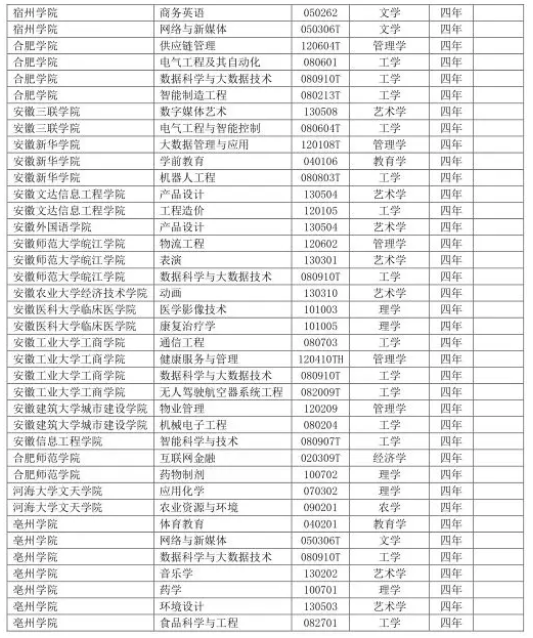 涉及安徽高校的專業(yè)