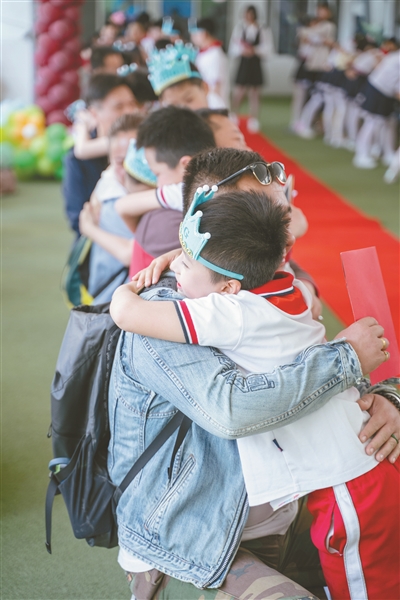 “因為有你,童年很甜蜜;因為有你,世界很美麗……”隨后全體同學起立,面對父母唱起了《感恩有你》,感謝父母十年來對他們的辛勤哺育,感恩父母給予他們最偉大無私的愛。父母也用最溫暖而有力的臂膀,把孩子高高抱起,感受這份成長的重量。