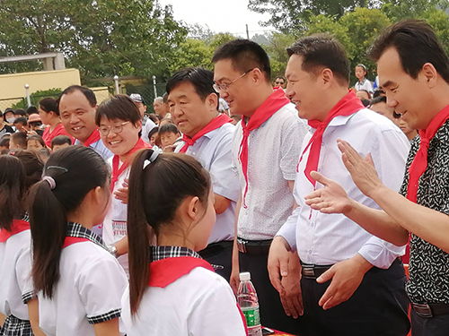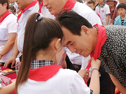 少先隊(duì)員為領(lǐng)導(dǎo)敬獻(xiàn)紅領(lǐng)巾