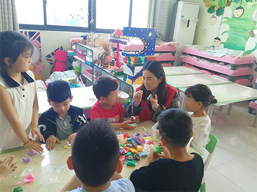 為了讓孩子體驗包粽子的感受以及發(fā)散孩子的創(chuàng)造思維能力,志愿者拿來超輕粘土,為孩子們準備了一場創(chuàng)意手工秀。首先由志愿者為孩子講解粽子的外形特征,示范粽子的制作手法,接著就輪到孩子們大展身手了。