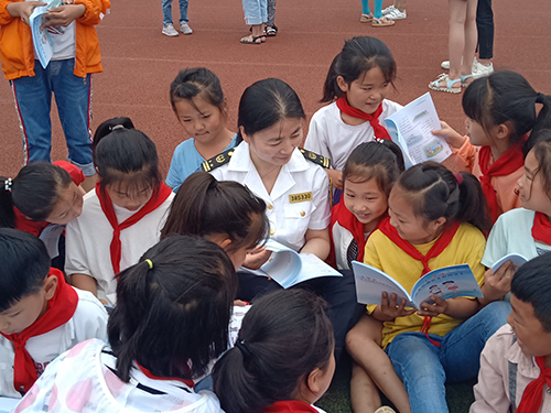 在室外活動(dòng)現(xiàn)場(chǎng),海事工作人員通過(guò)展板宣傳、以案說(shuō)法、發(fā)放資料、現(xiàn)場(chǎng)展示等方式,為師生講解水上交通安全基本常識(shí)、安全標(biāo)志識(shí)別、游泳安全知識(shí)、防溺水基本方法等內(nèi)容,并現(xiàn)場(chǎng)發(fā)放水上交通安全知識(shí)讀本300冊(cè)。