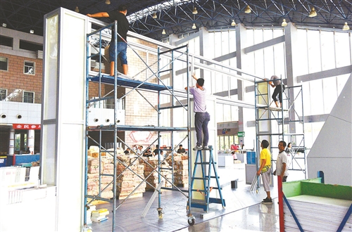 布置展區(qū)門頭。