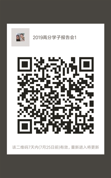 活動(dòng)采取微信報(bào)名購(gòu)票方法,可掃碼進(jìn)入“2019高分學(xué)子報(bào)告會(huì)”群預(yù)訂門票。主辦方提醒:“徐州高分學(xué)子公益報(bào)告會(huì)”群內(nèi)預(yù)收費(fèi),唯一指定人為記者魏欣(群主),聯(lián)系電話:13805208667。 |