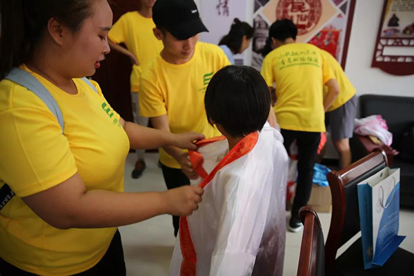 中國是禮儀之邦,尊老愛幼更是千百年流傳下來的美德,在新時代文明志愿者們的幫助下,孩子們穿上漢服,跟隨哥哥姐姐學習傳統(tǒng)禮儀的一招一式,并從簡單的禮儀動作中感悟中華禮儀之魅力。