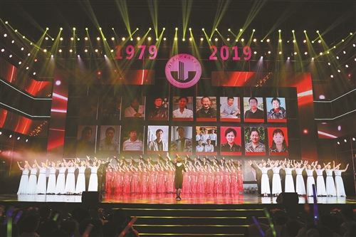 第三篇章的主題為“礪就卓越”,女聲獨(dú)唱《紅旗頌》謳歌了偉大祖國蒸蒸日上的繁榮景象。由各地校友會(huì)錄制剪輯的視頻《祝福——生日快樂》表達(dá)了校友們對(duì)母校的深切感恩之情。歌舞《再一次出發(fā)》呼喚師生不忘初心、砥礪前行。