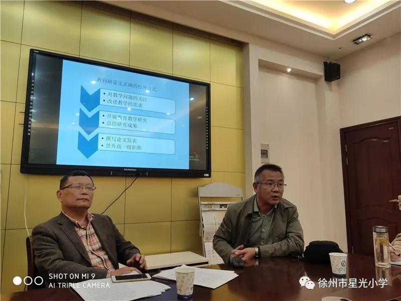 11月12日,徐州市星光小學(xué)“專家引領(lǐng)共前瞻,項(xiàng)目驅(qū)動(dòng)促發(fā)展”系列活動(dòng)如期舉行,徐州市教科所李賓主任、孫啟民主任一行蒞臨該校指導(dǎo)項(xiàng)目研究工作。徐州市星光小學(xué)項(xiàng)目負(fù)責(zé)人李昕副校長主持了本次活動(dòng),并代表學(xué)?蒲袌F(tuán)隊(duì)向李主任和孫主任匯報(bào)了目前學(xué)校項(xiàng)目組在論文撰寫方面遇到的困難。之后,李主任和孫主任分別就論文撰寫給老師們做了講座。老師們聽得非常認(rèn)真。大家紛紛表示,李主任和孫主任的講座內(nèi)容充實(shí),貼近老師們的實(shí)際需求。老師們覺得受益匪淺。