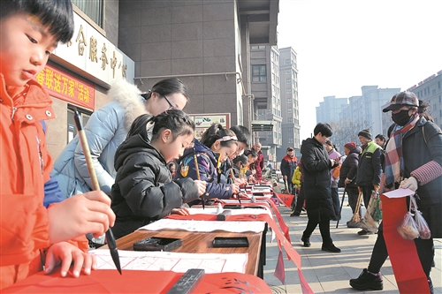 北辰小學(xué)社區(qū)送春聯(lián)。