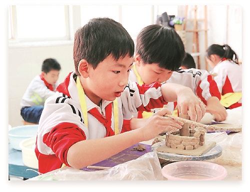 桃園路小學(xué)泥塑課堂。