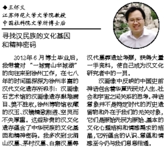 ◎徐報融媒記者 張瑾 攝影報道 “進入21世紀,世界格局面臨一個新的調(diào)整,美國人塞繆爾·亨廷頓寫了《文明的沖突與世界秩序的重建》,認為不同文明的沖突將導(dǎo)致未來社會的對抗。這個觀點值得警惕,也值得研究。做好中國自己的事,勇敢面臨挑戰(zhàn)是我們面臨的任務(wù)。”江蘇師范大學(xué)教授、漢文化研究院院長、《漢學(xué)大系》叢書主編朱存明在《漢學(xué)大系》總序中如是寫道。 上周,在江蘇師范大學(xué)的辦公室,朱存明教授從身后的書架中挑出厚厚的兩摞書:“這17本都是《漢學(xué)大系》叢書的前期成果,還有近20部書稿已基本完成。” 就在當天,《漢學(xué)大系》的又一新著、《徐州漢碑刻石通論》樣書剛剛由出版社寄到徐州,《石上風華——徐州新見漢代畫像石拓片選》的封面設(shè)計也通過了審核。 被學(xué)界稱為“建構(gòu)了‘新漢學(xué)’學(xué)術(shù)范式”的《漢學(xué)大系》致力于什么研究?與徐州有哪些關(guān)聯(lián)?這一文化工程對傳承中華文明有著怎樣的意義?本期《漢風周刊》走近《漢學(xué)大系》項目團隊的多位徐州學(xué)者,展示這一群體尚為公眾鮮知的學(xué)術(shù)貢獻和文化情懷。 用中國學(xué)術(shù)語言講中國故事 “徐州是漢高祖劉邦的故里、漢文化的發(fā)源地之一,如何認識與弘揚漢文化的精神,為今天的社會發(fā)展服務(wù),是當代學(xué)者面臨的重要任務(wù)。” 朱存明教授介紹,江蘇師范大學(xué)長期以來依托地緣優(yōu)勢,近十幾年來持續(xù)對漢文化進行深入研究、發(fā)掘與傳播,積累了一定的成果,繼2010年江蘇省高校社科重點研究基地“漢文化研究院”落戶江蘇師范大學(xué)后,2014年又獲批了國家社科基金重大招標課題“《漢學(xué)大系》編纂及海外傳播研究”項目。 “漢學(xué)”是一個歷史的概念,因時間與空間的不同而發(fā)生變化,在不同語境中有不同的內(nèi)涵。作為《漢學(xué)大系》項目的負責人,朱存明教授從《漢學(xué)大系》立項開始就明確了研究定位:“探求中華文化的歷史起源、學(xué)術(shù)源流、基因譜系、思維模式、道德價值等,為實現(xiàn)中華文化的歷史復(fù)興奠定基礎(chǔ)。” “我從小生在徐州、長在徐州,對徐州有著深厚的感情,視弘揚徐州漢文化為己任。”朱存明教授說:“《漢學(xué)大系》的內(nèi)容既涉及徐州,又不限于徐州。編纂《漢學(xué)大系》叢書,意在構(gòu)建中國特色學(xué)術(shù)話語體系,用中國的學(xué)術(shù)語言講好中國的故事,讓國際社會更好地了解中國、理解中國,使中華文化、中國文明走向世界。” 五年來,《新漢學(xué)的學(xué)術(shù)再造》《漢代器物與漢代信仰》《中國史前神話意象》等論著陸續(xù)出版,《讀書》《藝術(shù)百家》等先后發(fā)表評論,認為《漢學(xué)大系》對傳統(tǒng)進行了新的闡釋,特別是從漢畫像藝術(shù)解讀中國傳統(tǒng)文化精神,超越了舊漢學(xué)的考據(jù)傳統(tǒng)與西方漢學(xué)的隔膜,適應(yīng)了時代發(fā)展的要求,建構(gòu)了一種“新漢學(xué)”的學(xué)術(shù)范式。 打造漢文化研究的高端團隊 《漢學(xué)大系》項目團隊由江蘇師范大學(xué)為主的十余位教授組成,他們當中有資深的名教授,有年輕的博士后;有生于斯長于斯的徐州人,也有因求學(xué)就業(yè)從新疆、安徽來的新徐州人。 與新中國同齡的趙興勤教授來自劉邦的老家沛縣,至今從事教學(xué)工作46年,在學(xué)生們眼中“慈祥”又“謙和”。他在古代小說、戲曲研究領(lǐng)域多次獲教育部、省政府的科研、教學(xué)獎,漢畫中的藝伎演變是他近年的新研究,其專著將于明年由商務(wù)印書館出版。 淮安籍教授趙明奇17歲來到徐州,將大半生投入到徐州古方志、地方文化的研究工作,他與從江蘇師范大學(xué)退休的體育系教授劉秉果合著的《漢代武術(shù)》于去年經(jīng)文化藝術(shù)出版社出版。92歲的劉秉果今年初病逝,趙明奇教授感慨:“文化工作許多時候就是搶救性工作。” 已出版的《漢學(xué)大系》叢書中,有4部徐州學(xué)者的書獲得了省部級獎:朱存明的《漢畫像之美——漢畫像與中國傳統(tǒng)審美觀念研究》、武利華的《徐州漢畫像石通論》、朱滸的《漢畫像中的胡人圖像研究》、顧穎的《漢畫像藝術(shù)概論》,部分優(yōu)秀之作被譯成英、法、日、韓文,在國外出版。目前,趙興勤著《漢代伎藝發(fā)展演變史論》、周保平著《漢代吉祥文化》、周葦風著《三楚文學(xué)與漢文化研究》、周珩幫著《漢代書法與漢代社會》等十余部書稿已脫稿,有的已進入排版印刷環(huán)節(jié)。 《漢學(xué)大系》自立項以來,朱存明教授兩次組織國內(nèi)知名專家召開“漢文化高端論壇”學(xué)術(shù)研討會:“學(xué)術(shù)交流中,我們又邀請了北京大學(xué)、清華大學(xué)、南京大學(xué)、臺灣大學(xué)的多位教授及優(yōu)秀博士參與進來,為‘新漢學(xué)’研究增添新的力量,提升團隊的學(xué)術(shù)水平。” 助力文化建設(shè)推動遺存保護 徐州發(fā)現(xiàn)的大量漢代遺存為《漢學(xué)大系》項目的研究提供了豐富的實物資料,學(xué)者們在學(xué)術(shù)研究的同時,也為徐州的城市文化建設(shè)、漢文化遺存保護、公眾文化普及貢獻著自己的力量。 朱存明教
