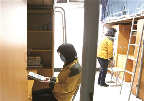 據(jù)高主任介紹,學(xué)校要求住校學(xué)生戴上口罩按照相應(yīng)路線間隔一米到開水房打水、洗漱等,期間不許講話打鬧。值勤教師及宿管人員隨時(shí)巡查,發(fā)現(xiàn)有疑似癥狀學(xué)生,將立即帶領(lǐng)其離開宿舍到臨時(shí)觀察室,并立即電話匯報(bào),啟動(dòng)學(xué)校防疫應(yīng)急預(yù)案。