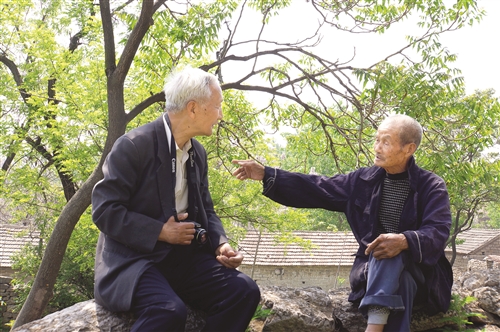 2015年在吳邵村與老者交談。