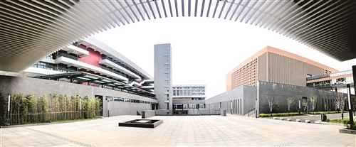 一中新校區(qū)位于奧體中心西對(duì)面、漢源大道以西,占地約173畝,建筑面積約14萬(wàn)平方米(地上約9萬(wàn)平方米,地下約5萬(wàn)平方米)。昨日上午,記者探訪一中新校區(qū),看到校園打破常規(guī)科學(xué)利用地下空間。在各樓內(nèi)設(shè)寬大的自主學(xué)習(xí)、互動(dòng)研討、休閑娛樂健身空間。有自由開放式圖書館、展廳;有多種功能學(xué)習(xí)報(bào)告廳。設(shè)有球類訓(xùn)練場(chǎng)、大禮堂、學(xué)生社團(tuán)活動(dòng)空間等。各功能區(qū)域、建筑物之間、地上地下互聯(lián)互通,最大程度便捷師生。