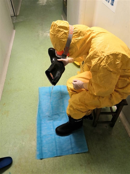 進(jìn)入隔離病房工作是怎樣的?我們不妨聽下葛雪的故事。2020年2月5日,是她進(jìn)入隔離病房工作的第5天。當(dāng)天的工作特別忙,6小時(shí)的工作時(shí)間里,她走遍了每一個(gè)病房:除了輸液、測(cè)體溫、測(cè)血氧飽和度、血?dú)夥治龅茸o(hù)理操作,她還清理了病房的所有垃圾,對(duì)每間隔離病房的空氣、地面、墻壁都進(jìn)行了消毒。在防護(hù)服嚴(yán)密的包裹下,她明顯感受到身體潮氣向外噴涌,但她不曾停下腳步。終于,工作結(jié)束。脫掉一層層的防護(hù)盔甲,疲憊的身體得以舒展,可貼身的隔離衣早已濕透。脫膠靴時(shí)流出了很多水。水從何來(lái)?鞋子破了?幾經(jīng)排查,才確認(rèn)鞋子沒(méi)有破,這都是葛雪流出的汗。