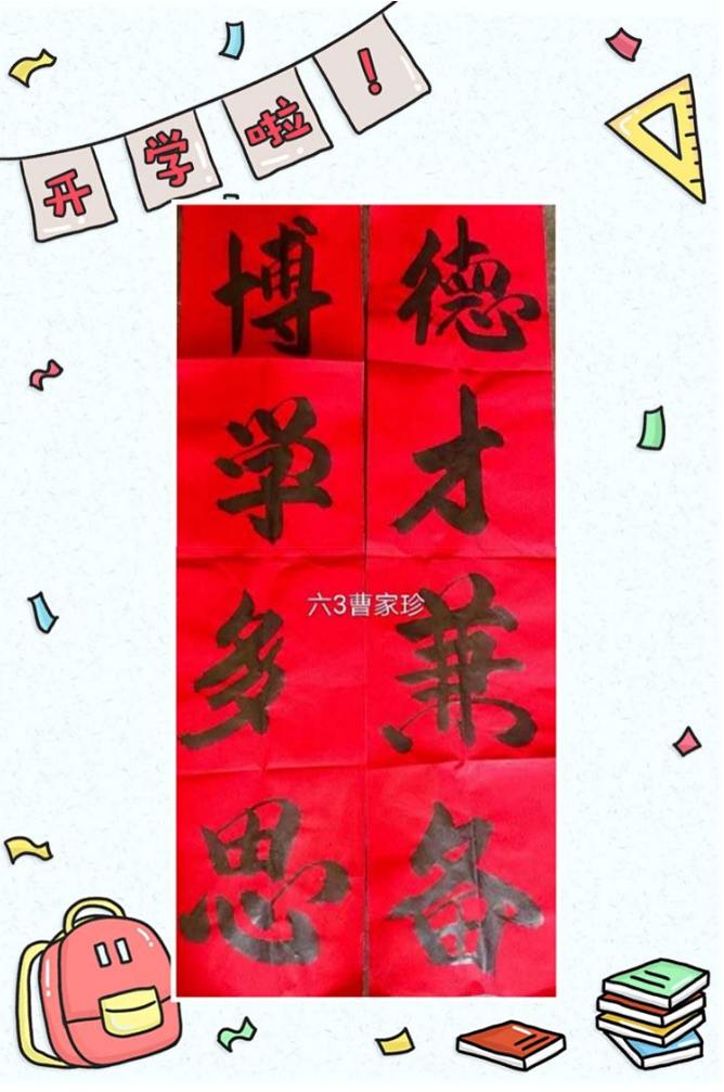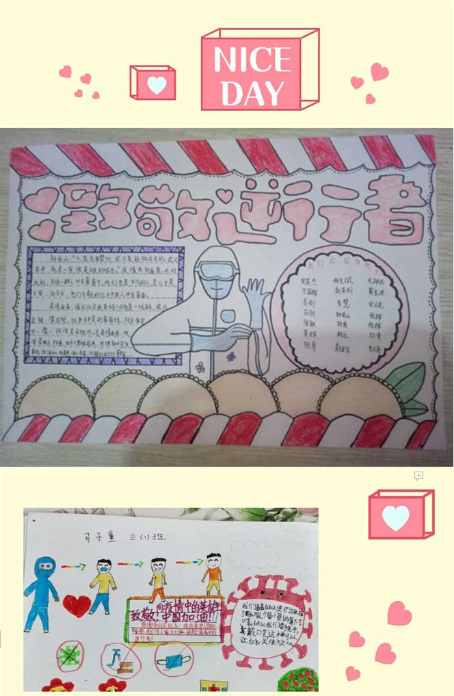 同學(xué)們用遒勁有力的書法作品、抗擊疫情的手抄報(bào)和熱情洋溢的圖畫來(lái)表達(dá)自己的愛(ài)國(guó)之情。
