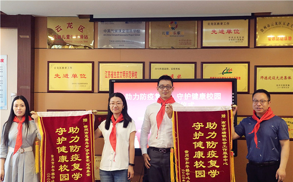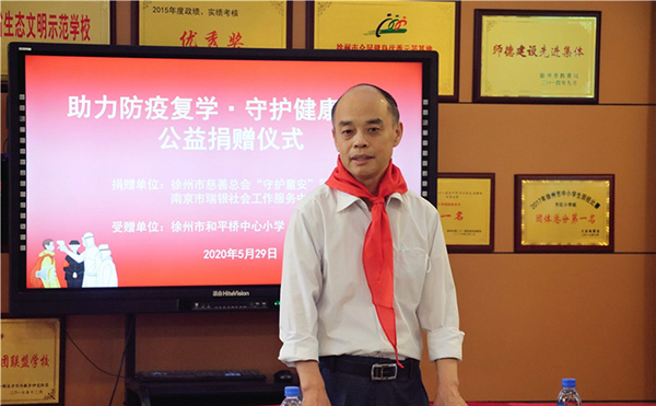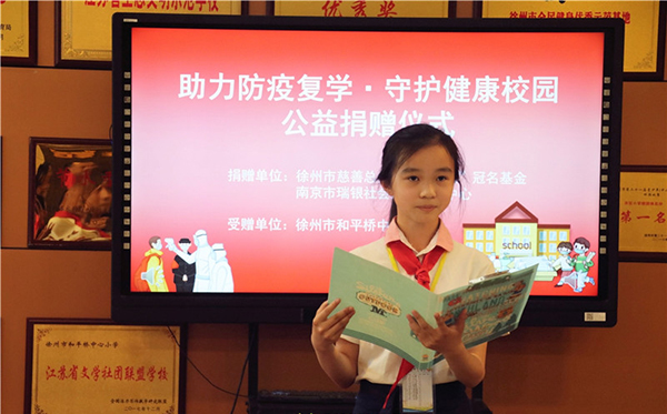 有一種感動(dòng)叫“守望相助”,有一種善舉叫“盡我所能”,和平橋中心小學(xué)學(xué)生代表在儀式上對(duì)愛心單位表示深深的感謝;在捐贈(zèng)儀式最后,徐州市教育局李穎處長、徐州市和平橋中心小學(xué)王保全校長分別為徐州市慈善總會(huì)“守護(hù)童安”冠名基金、南京市瑞銀社會(huì)工作服務(wù)中心贈(zèng)送旌旗。