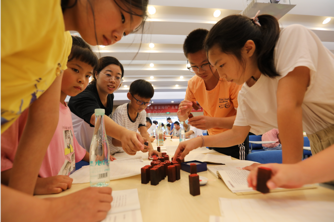 張恩華從《千字文》中取字,通過“紅木活字”的印字游戲,讓孩子們?cè)跉g樂中學(xué)習(xí)每一字句中蘊(yùn)含的文化歷史知識(shí),以樂促學(xué),激發(fā)興趣,探觸中華民族的文化核心。