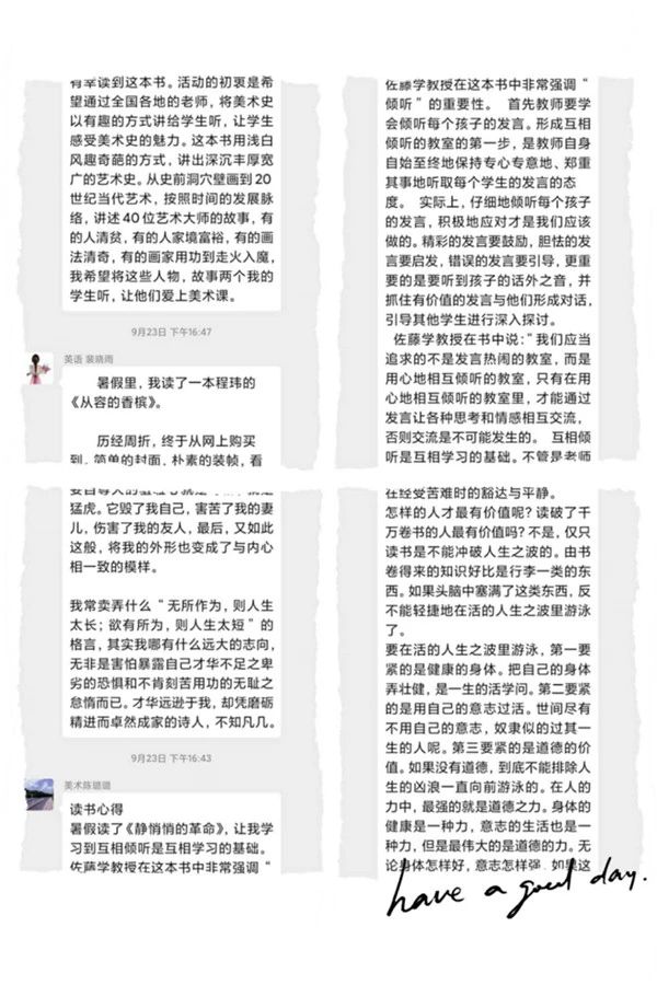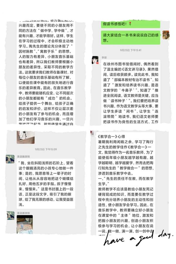 除了讀書(shū)筆記,老師們還積極撰寫(xiě)心得感悟,并制作PPT進(jìn)行組內(nèi)的交流。通過(guò)評(píng)選,一部分優(yōu)秀的讀書(shū)感悟脫穎而出,后期會(huì)利用公眾號(hào)進(jìn)行展播。