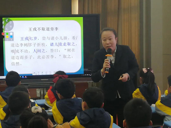 現(xiàn)場會分別有語、數(shù)、英三個會場同時開展,五樓報告廳開展的語文現(xiàn)場會。語文會場首先由李麗娟主任做“表現(xiàn)性學(xué)習(xí)”的中期匯報,接著由黃長慧老師執(zhí)教四年級《王戎不取道旁李》一課,黃老師巧設(shè)情境,設(shè)計了四個真實(shí)而有意義的學(xué)習(xí)活動,為學(xué)生提供展示學(xué)習(xí)成果的舞臺,促進(jìn)了學(xué)生課堂上活生生的表現(xiàn)。最后,由語文前瞻組的教師以“以表現(xiàn)促學(xué)習(xí),讓學(xué)生立在場中央”為主題的研討會。討論中,老師們從表現(xiàn)性學(xué)習(xí)的任務(wù)設(shè)計、前置評價、學(xué)生課堂的表現(xiàn)樣態(tài)進(jìn)行了課例研討。讓與會的各個兄弟學(xué)校的老師們了解了表現(xiàn)性學(xué)習(xí)的基本流暢,實(shí)施策略;讓尊重學(xué)生的學(xué)習(xí)需求,為每一位學(xué)生的表現(xiàn)與發(fā)展提供平臺,始終把學(xué)生立在課堂的中央的理念和實(shí)施策略深入到每一位老師的心中。