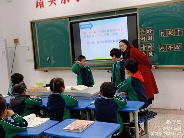 金維芬老師緊緊圍繞《打電話》主題進(jìn)行,在具體的情境中開展交際活動。