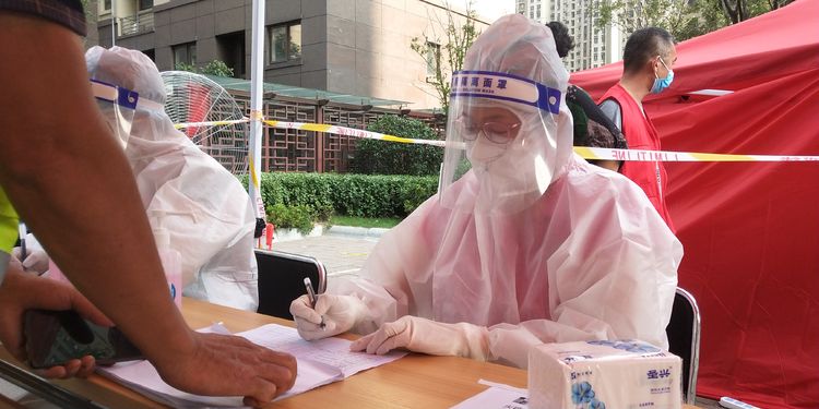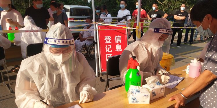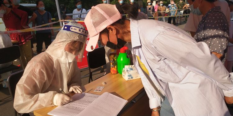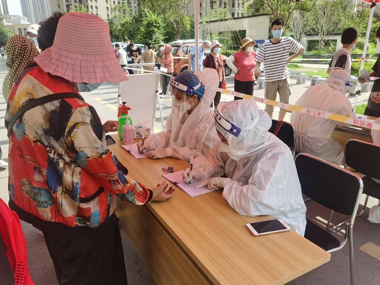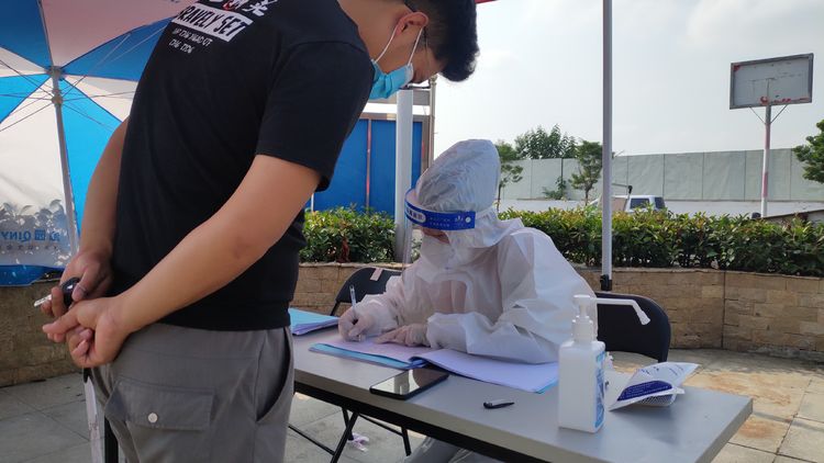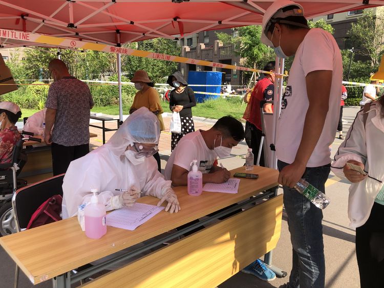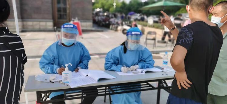 他們認真的對待每個防控環(huán)節(jié),測量體溫、掃健康二維碼、登記相關(guān)信息。