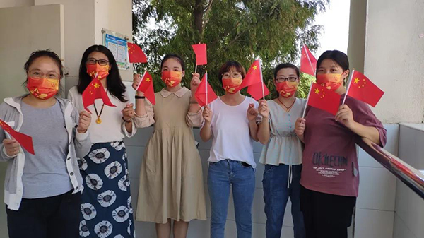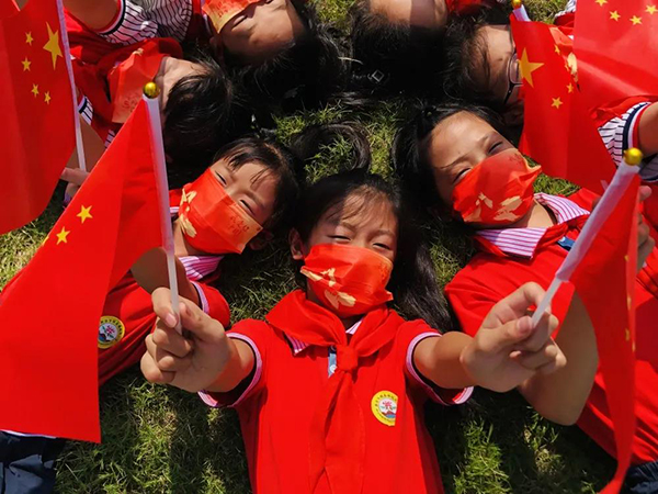 鮮紅的國旗熠熠生輝,五顆星的排列組合,凝聚著團結(jié)的力量。老師們、隊員們與神圣的五星紅旗合影,一張張生動笑臉,表達(dá)著對祖國深深的愛戀。