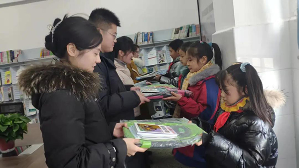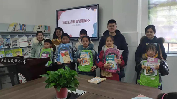 教師幫扶代表為孩子們發(fā)放“新年心愿”冬日愛心包:書籍、書包、作業(yè)本等學(xué)習(xí)用品;把一份份充滿愛意的溫暖傳遞到每一個孩子的手中。