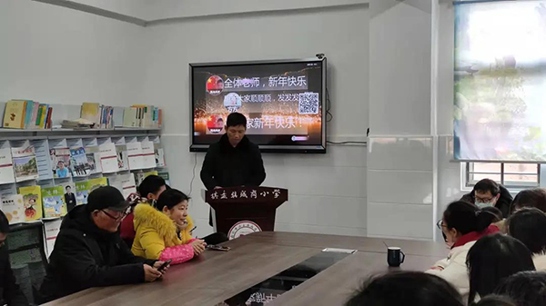 活動(dòng)伊始,全體教職員工通過互動(dòng)系統(tǒng)在大屏幕上推送了自己的新年愿望,并相互發(fā)出了美好祝福。隨后,校長曹剛用最接地氣致辭帶領(lǐng)大家共同回顧了學(xué)校2021年的工作,并衷心感謝全體教職工一年來付出的努力以及家屬對(duì)學(xué)校工作的支持,預(yù)祝大家新春快樂,身體健康。