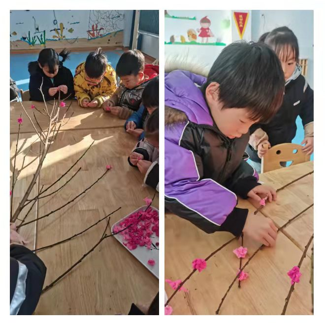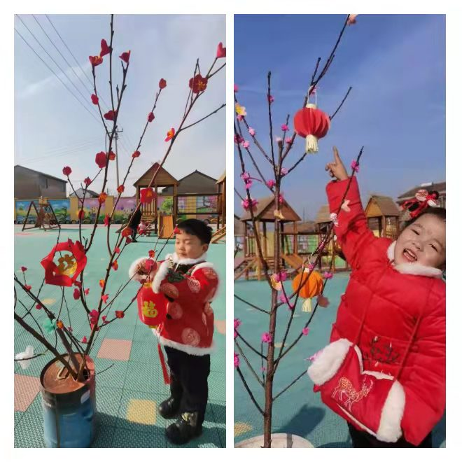 小朋友在老師和平安志愿者的指導(dǎo)下,搓動著靈活的小手,開始了天馬行空的創(chuàng)作之旅,認(rèn)真的小表情別提多可愛了。每個孩子都是了不起的藝術(shù)家,不一會兒,一棵棵梅花樹就制作完成了,小朋友看到自己做出來的梅花,不由得驚嘆,好漂亮呀!老師又在桃花樹上掛上了火紅的燈籠,更有了過年的喜慶氣氛,小朋友開心的在桃花樹下追逐打鬧別提有多開心啦!